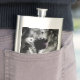 The product is a good size and came exactly as it was pictured. The lid is not attached to the flask, which could be dangerous on drunken nights... The print came out surprisingly well and looks very sharp. Would definitely recommend.