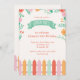 A delightful garden party invitation with a top border of flowers and a colourful picket fence as a bottom border. Perfect for a backyard affair. The card is easy to customise with your wording, font, font colour, paper shape options and choice of six paper types.<br/><br/>Not exactly what you're looking for? All our products can be custom designed to meet your needs at no extra charge.<br/><br/>Simply contact us at heartfelthelper@gmail.com<br/><br/>Coordinating products available: Just ask us!