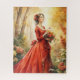 Lady in red picking flowers in a forest