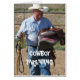 CLEANING UP AFTER KIDS OR GRANDKIDS. Funny Western card offers helpful words of wisdom or silly parenting tips from our friendly horse herd friends. Fun for parents or grandparents. Cover features a photo of a cowboy grandad carrying a pony saddle, horse blanket, lead rope, horse halter; an Australian cattle dog on the back. Folks who love rural life, ranch life, country living or life on the farm will enjoy! You can leave card background white or pick a custom colour. From the original "Cowboy Parenting Series" by She Wolf Medicine.
