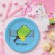 Pickle Ball Pickleball Design Paper Plate with customisable text and background colour.