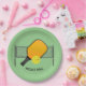 Pickle Ball Pickleball Design Paper Plate with customisable text and background colour.