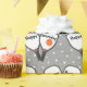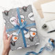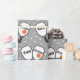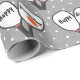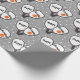 Orange pickleball and paddle with personal name on grey and white polka dot pattern.