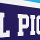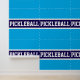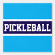 This sporty design features athletic PICKLEBALL text inside a wide horizontal bold navy stripe highlighted with white stripes against an azure blue background. The colours and text in this design can be personalised.