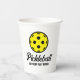 Pickleball Birthday party cups with funny quote. Custom party supplies with yellow ball logo and script text. Cute design for fan, player, sports coach, mum, dad, mother, wife, daughter, teenager, husband, couple etc. Change ball logo into any colour. Personalise with your own funny quote or team name.