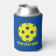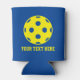Pickleball can coolers with custom colours and text. Personalised beverage holders for Birthday party, home, BBQ, club house, tournament etc. Blue and yelllow or custom colour. Make your own for pickleball lover, fan, player, dad, mum, son, daughter, sister, brother, father, mother, aunt, uncle, team, friends, teammates, grandpa, grandma, trainer, kids etc.