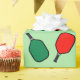 Creative pickleball themed Christmas holiday gift wrap featuring red, green and white pickleball paddles pattern.