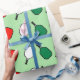 Creative pickleball themed Christmas holiday gift wrap featuring red, green and white pickleball paddles pattern.
