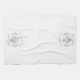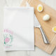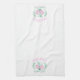 This pickleball towel has a pink and green line art image of pickleball paddles and a martini glass surrounded by laurel branches with the phrase "Pickleball Cocktail Club, Please Dink Responsibly." Colours used include green and pink.
