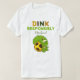 Show off your love for pickleball in style with this "Dink Responsibly" t-shirt! Featuring a pickle laying across a pickleball all in bright yellow green colours, this design combines humour with a sporty vibe. Crafted with script calligraphy, the shirt is available in shades of green and yellow. Customise it with a name for a personal touch. Perfect for pickleball enthusiasts who reign supreme on the court, this shirt makes a great gift or addition to your athletic wardrobe.