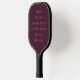 Pickleball Game Phrases Sayings And Words coloured with carmine red magenta colour text lettering compliments the dark burgundy purple wine grape coloured background perfectly. The other side has a pickle green colour background.