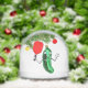 Creative classic pickleball holiday gift, stocking stuffer or party favour featuring pickle ornament playing pickleball in a Christmas tree.