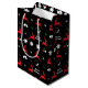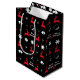 Red, green and white Christmas pickleball Medium Gift Bag with reindeer, pickleballs and snowflakes on black background. Great idea to wrap up you presents for you pickleball friend or family member