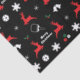 Red, green and white Christmas pickleball Tissue Paper with reindeer, pickleballs and snowflakes on black background. Great idea to wrap up you presents for you pickleball friend or family member