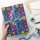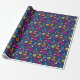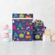 Colourful Christmas pickleball wrapping paper with colourful Christmas icons on navy blue background. Great idea to wrap up you presents for you pickleball friend or family member