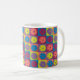 Pickleballs all over. Colourful pickleballs on contrast squares. Colours inc. living coral and lime green. Nice as a gift for any pickleballer. Available in 8 styles and 2 sizes (11 oz and 15 oz)