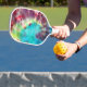A White Pickleball paddle, (standard), with Cover,=(optional), with a picture of Tye Dye #1 on the front of it and reversed on the back of it, = (Picture by P.J.M.) with a White colour, Official USA Pickleball Certification.=(optional).