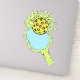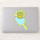 Vinyl sticker features green and blue pickleball paddle, curved text and yellow game ball.