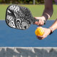 Striking pickleball paddle design in black and white. Doodle fun! One of a kind art…be the one that stands out! Buy one for your teammate!