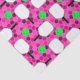 Pickleball paddles and bright green balls on magenta, purplish-red hexagons in a honeycomb pattern. My favourite pickleball paddle has an obvious honeycomb pattern.