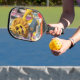 Paleta de Pickleball del del verdadero León Marx, sobre su patineta.