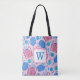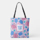 Pickleball Paddles and Balls Pink Preppy Initial Tote Bag