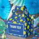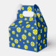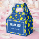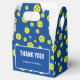 Pickleball party favour box with personalised message. Fun yellow tennis ball pattern design. Great for birthday party, club gathering, teams etc. Custom blue background colour.