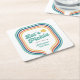 Pickleball Party Let's Pickle Retro Rainbow Stripe Square Paper Coaster