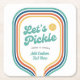 Fun paper coasters for your next pickleball party. Design features a retro stripe outline of a Pickleball Paddle and the words "Let's Pickle" in a fun font. Easily add your custom text - player's name, pickleball club/tournament name, etc. Great for an adult pickleball birthday party, girl's or guy's pickle gathering or everyday fun. Let's Play - the best sport ever!!