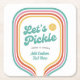 Fun paper coasters for your next pickleball party. Design features a retro stripe outline of a Pickleball Paddle and the words "Let's Pickle" in a fun font. Easily add your custom text - player's name, pickleball club/tournament name, etc. Great for an adult pickleball birthday party, girl's or guy's pickle gathering or everyday fun. Let's Play - the best sport ever!!