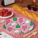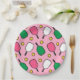 Creative pickleball party or event plates featuring hot pink and cool green paddles and yellow balls pattern on pink background for your favourite pickleball players.