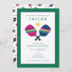 Celebrate your pickleball player or fan with these fun and vibrant party invitations featuring striped blue, green and pink pickleball paddles. Text is customisable. Birthday age is also customisable. Part of a collection from Parcel Studios.