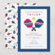 Celebrate your pickleball player or fan with these fun and vibrant party invitations featuring striped blue, green and pink pickleball paddles. Text is customisable. Birthday age is also customisable. Part of a collection from Parcel Studios.