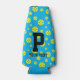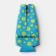 Pickleball pattern bottle cooler with custom text. Personalised beverage holders for Birthday, home, BBQ, club house, tournament etc. Custom blue background colour with polka dot balls. Make your own for pickleball lover, fan, player, dad, mum, son, daughter, sister, brother, father, mother, aunt, uncle, team, friends, teammates, grandpa, grandma, trainer etc.