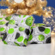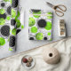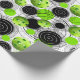 A cute design depicting a pattern of neon green pickleballs surrounded by black and white spiralling circles.