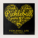 This fun and eye-catching puzzle features a bold heart-shaped word art design made entirely from pickleball terms like "Dink," "Serve," "Kitchen," and "Rally." The design is printed in yellow text on a black background for striking contrast — perfect for players, coaches, or fans of the game.