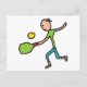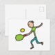 Pickleball design features expert player at full stretch with pickle ball and bat.