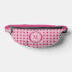 Classic pink girly fanny pack pickleball design features two lines of customisable text for "Pickleball Princess" or custom saying of choice and name or custom text in a timeless modern font arched over & under an image of a pickleball in matching pink. Add one or two intials in the centre of the design over the image of the ball. Larger initial combos may need to be sized down for spacing. The area above the zipper is solid pink. Contact me for questions or custom colour requests.