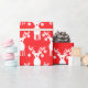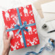 Red and white Christmas pickleball wrapping paper with reindeers and pickleballs on red background. Great idea to wrap up you presents for you pickleball friend or family member