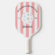 Super fun Pickleball Social Club custom pickleball paddle with a pink striped background. All text can be personalised. Add your team name and your name or nickname and established in year. Preppy cabana stripes form the background with a white pickleball at the centre. Let your paddle reflect your personality on the court. Whether you're dinking with finesse or dominating the net, this paddle combines performance with undeniable flair for the stylish pickleball enthusiast.