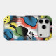 This energetic pickleball design features five paddles in blue, green, and black with red and white accents, set against a graffiti-style background of dripping spray paint in red, blue, yellow, black, and white. Two yellow pickleballs with black holes add sporty contrast, while abstract motion lines near the center enhance the dynamic feel. Designed for fans of urban art and high-energy sports, this composition blends street style with pickleball passion. Great for birthdays, team events, or holiday gifting. A pickleball-inspired phone case for your gym bag, tournament tote, or locker room flair.