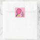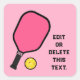 Fun pickleball gift stickers, party favour labels or envelope seals featuring hot pink paddle and yellow ball. To customise edit text.