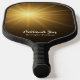 Cool unique design features an abstract illustration of a golden yellow starburst explosion of light against a dark background. "Pickleball Star" and name appear in stylish script & lettering. All text is customisable with the simple to use template. The design repeats on the reverse side. Perfect fun & unique pickleball gift for him or her.