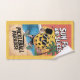 SUN FUN AND SLICES is the bold, playful headline featured on this vibrant towel, with PICKLEBALL PARADISE printed below to complete the tropical theme. The design showcases a cheerful pickleball mascot wearing sunglasses, a black shirt, grey shorts, and green sneakers, running across a sunny beach with paddle in hand. A radiant sunset, palm trees, ocean waves, and flying birds create a lively vacation vibe. Ideal for any pickleball club, team, or tournament hosted at a tourist resort or beachside destination. This large beach towel makes a perfect gift for any pickleballer, fan, coach, or player who loves stylish, funny, and sporty gear. Whether you're dinking in the kitchen or relaxing after a match, this towel brings the spirit of pickleball paradise to life.