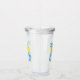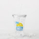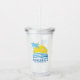 A fun pickleball plastic tumbler featuring a pickleball "sun" framed by a tropical palm tree and blue ocean waves. Add your custom text below - club name, pickleball weekend date/location, tournament name, player names, etc. Makes a perfect gift for any pickleball player.
