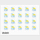 A fun pickleball sticker featuring a pickleball "sun" framed by a tropical palm tree and blue ocean waves. Just add your custom text to personalise.