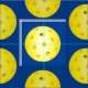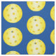 Pickleball Yellow Ball Pattern on Blue Fabric.