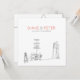 The minimalist black and white colour scheme of this wedding invitation exudes sophistication and modernity, making it a stylish choice for couples who appreciate simplicity and elegance. The thoughtful details in the illustration, such as the couple's embrace and the picnic elements, add a touch of whimsy and charm to the overall design. The combination of classic black and white with a vibrant pop of orange creates a visually striking contrast that is sure to catch the eye of your guests.