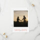 This save the date card is the perfect blend of modern and casual, with a black and white minimalist theme accented by a pop of orange. The front of the card provides the opportunity to showcase a special image, adding a personal touch to the announcement of your upcoming event. On the back, the casual and informal wording is complemented by simple typography in a charcoal colour, creating a relaxed and inviting feel. The addition of a minimal line art illustration featuring a couple holding hands with a golden retriever tied to a signpost adds a touch of charm and warmth to the overall design. This save the date card is a wonderful way to inform your guests of your special day in a stylish and heartfelt manner.