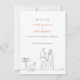 This save the date card is the perfect blend of modern and casual, with a black and white minimalist theme accented by a pop of orange. The front of the card provides the opportunity to showcase a special image, adding a personal touch to the announcement of your upcoming event. On the back, the casual and informal wording is complemented by simple typography in a charcoal colour, creating a relaxed and inviting feel. The addition of a minimal line art illustration featuring a couple holding hands with a golden retriever tied to a signpost adds a touch of charm and warmth to the overall design. This save the date card is a wonderful way to inform your guests of your special day in a stylish and heartfelt manner.